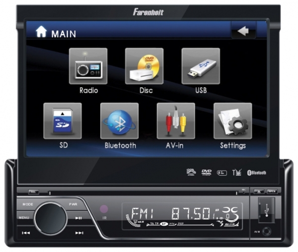 TID-893B - CD/DVD - автомагнитола. Краткие технические характеристики: 4x50 Вт, CD-R, CD-RW, DVD-R, DVD-RW, MP3, WMA, усилитель, эквалайзер, функция CD-Text, FM/AM радио, сенсорный дисплей, слот для карт памяти SD/MMC, поддержка камеры заднего вида, Bluetooth, поддержка профиля A2DP.